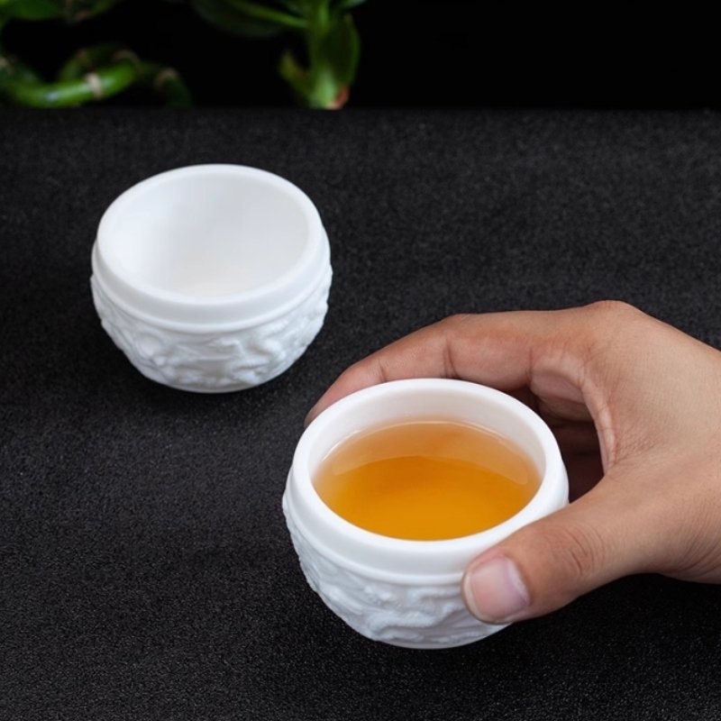The Handmade Embossed Flying Dragon White Jade Porcelain Kung Fu Tea Cup is made from durable porcelain, ensuring that it will withstand years of use without losing its luster. The white jade finish adds a layer of refinement, giving the cup a timeless appeal. Its durability, combined with the intricate and meaningful design, makes this cup a valuable addition to any tea collection. Whether used for everyday tea enjoyment or as a special piece in a formal tea ceremony, it will always stand out as a symbol of craftsmanship and tradition.