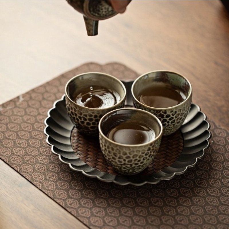 Every tea cup in our collection is uniquely hand-crafted, ensuring that no two pieces are exactly alike. The grid glaze pattern adds a touch of sophistication and vintage charm to the design, with subtle shades of brown and green that reflect light in a beautiful way. These cups are perfect for those who appreciate authentic craftsmanship and desire a tea experience that is as much about aesthetic pleasure as it is about taste.