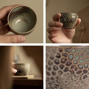 This Handmade Vintage Grid Glaze Traditional Japanese Ceramic Gongfu Tea Cup makes for a thoughtful gift for tea lovers or collectors. It’s a piece of artistry that transcends mere functionality and embodies the spirit of tea culture. Its classic design and careful craftsmanship make it a valuable addition to any collection of Japanese porcelain tea cups.