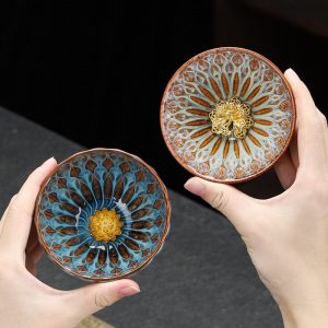 Whether you’re a collector of fine ceramics or simply a lover of tea, the Hollow Gold Flower Peacock Feather Pattern Tenmoku Jianzhan Ceramic Tea Cup is an exceptional piece to add to your collection. It makes for a thoughtful and sophisticated gift, and its beautiful design will surely be appreciated by anyone who values the artistry of traditional ceramics. For those who enjoy diverse tea cultures, explore our Japanese tea cup set to discover more elegant tea cups.