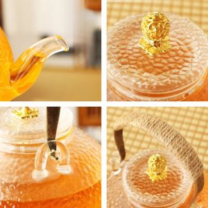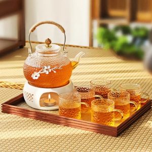 Crafted from borosilicate glass, this set is not only visually appealing but also built to last. Borosilicate glass is known for its heat-resistant properties, making it ideal for hot tea brewing. You can confidently pour boiling water into the teapot without worrying about cracks or breakage. The durability and resistance to thermal shock ensure that this tea set will remain a staple in your home for years. Pair this set with a borosilicate glass teapot for a complete tea experience.