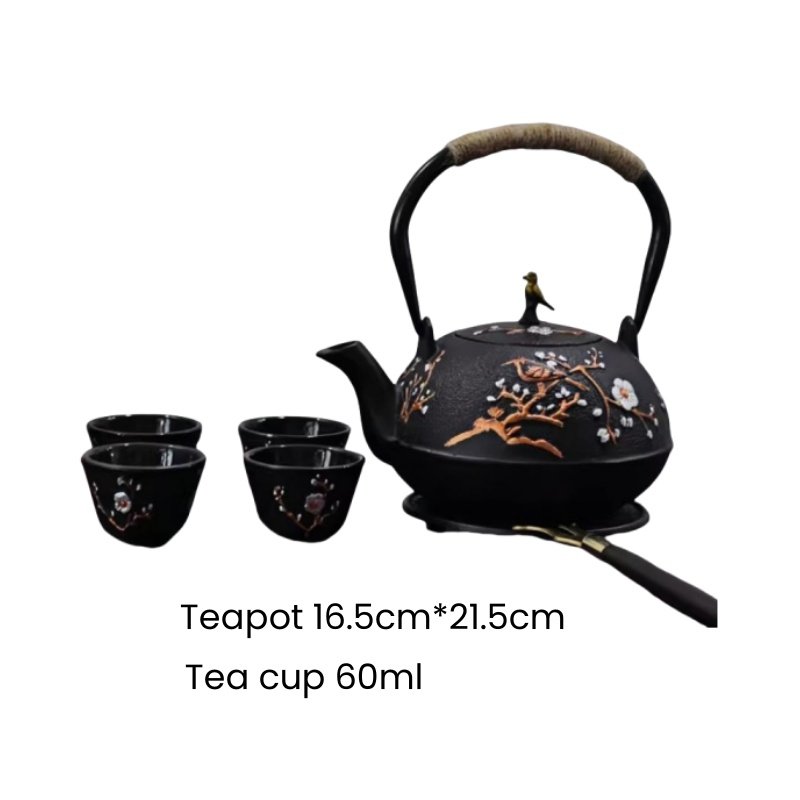 This teapot set is accompanied by four beautifully crafted cast iron tea cup, each echoing the intricate magpie and plum pattern. With a capacity of 60 ml per cup, these cups are ideal for sipping your favorite tea while offering a visual harmony with the teapot. Whether you’re hosting a small tea party or enjoying a quiet moment, these cups elevate the experience.