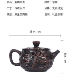 The Large Capacity Antique Chinese Purple Pottery Dragon Teapot is not only a perfect standalone piece but also complements any traditional Chinese tea set. The rich colors and intricate details of the teapot make it a striking addition to any collection. Pair it with other teapots, cups, and accessories from our Chinese ceramic tea set collection for a complete tea experience.