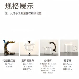 The Lifelike Bird and Gilded Glaze Ceramic Tree Glass Lazy Semi-Automatic Tea Set offers a perfect blend of traditional elegance and modern convenience. With its charming bird perched on a ceramic tree, this tea set is a unique piece that adds a touch of nature to your tea ceremony. The intricate gilded glaze and the semi-automatic pouring system make this set a true marvel for both tea connoisseurs and those seeking an exquisite addition to their kitchen or dining room.