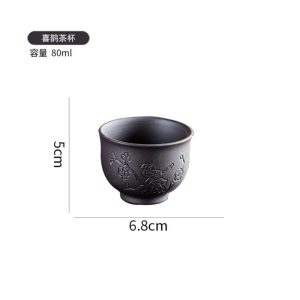 Each tea cup in this set has a capacity of 80 ml (2.7 fl oz), making it ideal for enjoying small, concentrated servings of tea. The 6.8 cm diameter and 5.0 cm height provide a comfortable and easy-to-hold design, making them perfect for traditional tea ceremonies or casual tea-drinking moments. If you’re interested in a more expansive tea set, our dragon tea cup and saucer collection offers larger, more decorative options.