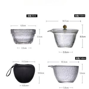 The Minimum Space Required Antique Glass Gaiwan Gongfu Travel Tea Set with Case is the perfect choice for tea lovers who seek both elegance and practicality. This beautiful set includes a glass gaiwan, a fair cup, and a tea cup, all housed in a durable carrying case, making it ideal for those who want to enjoy their favorite teas wherever they go. The frosted glass finish offers a modern twist to the traditional Gongfu tea set, allowing you to experience the art of tea brewing in style. Whether you’re at home, at the office, or on the move, this set lets you enjoy premium beverages with ease.
