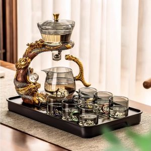 This tea set features a semi-automatic lazy function that makes your tea preparation easy and efficient. With a simple tilt of the teapot, the tea flows smoothly into the cups, eliminating the need for manual pouring. The lazy function allows you to focus more on enjoying your tea and less on the brewing process. If you’re looking for other convenient tea sets, you might want to explore our clear glass tea set.
