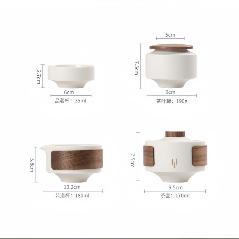 Crafted from premium white porcelain, this tea set offers an elegant and clean aesthetic. The smooth, glossy surface of the porcelain ensures that the set remains pristine over time. White porcelain is not only visually appealing but also perfect for retaining the ideal temperature for your tea. Its minimalistic yet refined design makes it a timeless addition to any tea collection.