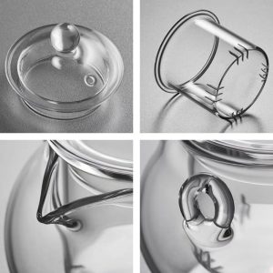 Made with high-quality borosilicate glass, this tea set is known for its superior heat resistance and long-lasting durability. Whether you’re brewing tea at high temperatures or serving it at lower temperatures, this set can handle it all. The clear glass lets you appreciate the color of your tea as it brews, while the double-wall construction ensures that the teapot remains safe to handle without the risk of burns. For those who want a durable and elegant tea set, our borosilicate glass teapot complements this set perfectly.