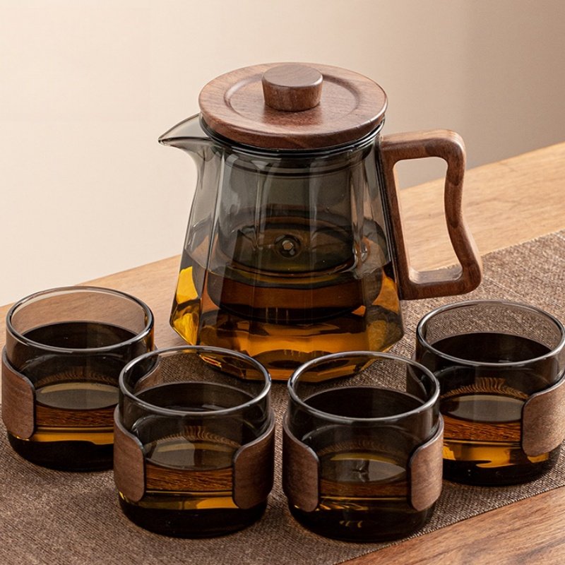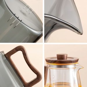 Elevate your tea-drinking experience with the Modern Grey or Clear Borosilicate Glass Tea Sets with Wooden Handle for Adults. Combining modern aesthetics with practical functionality, this tea set is perfect for those who enjoy quality tea in style. Made from high-quality borosilicate glass, this set is not only elegant but also durable, heat-resistant, and long-lasting. The wood-accented handle and lid add a touch of nature, making this tea set a unique and sophisticated addition to your kitchen or dining area.