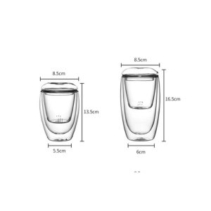 The Modern Simple Clear Borosilicate Double-Wall Glass Tea Cup Mug with Tea Infuser and Lid offers an elegant and functional design, combining high-quality borosilicate glass with a double-wall structure to provide both visual appeal and practical benefits. The double-wall design helps maintain the temperature of your tea, keeping it hot for longer while ensuring the outer surface remains cool to the touch. With a built-in tea infuser and lid, this tea cup makes it easier than ever to brew loose leaf tea, allowing for a clean and convenient tea experience. This stylish tea cup is ideal for those who appreciate both form and function in their tea accessories.