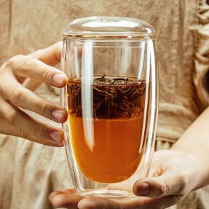 The double-wall construction of this tea cup offers both aesthetic and functional benefits. The transparent borosilicate glass allows you to admire the tea’s color and clarity, while the double-wall structure keeps your beverage warm for extended periods. This feature also ensures that the exterior of the cup remains cool to the touch, making it comfortable to hold. For more elegant and practical designs, you can explore our glass tea mug collection, which offers a range of sophisticated mugs to suit any tea lover’s needs.