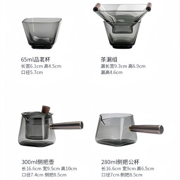 Modern Square Grey and Transparent Fancy Glass Tea Set With Wooden Side Handle