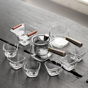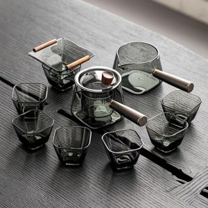 Be the first to review “Modern Square Grey and Transparent Fancy Glass Tea Set With Wooden Side Handle”