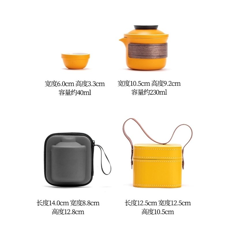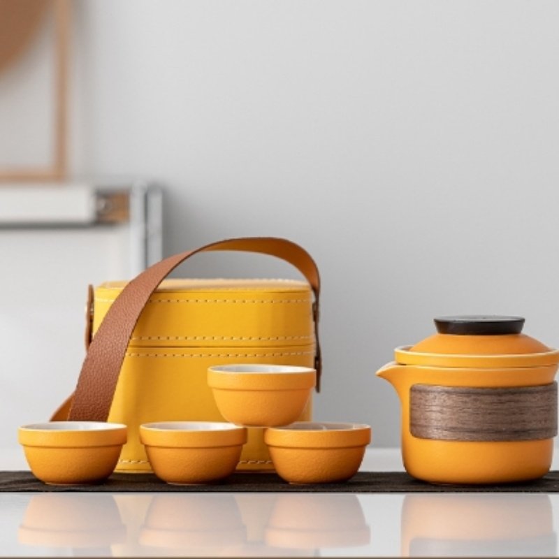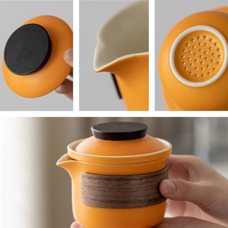 Orange Ceramic Wooden Insulation Travelling Portable Tea Set with Case