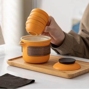 Be the first to review “Orange Ceramic Wooden Insulation Travelling Portable Tea Set with Case”