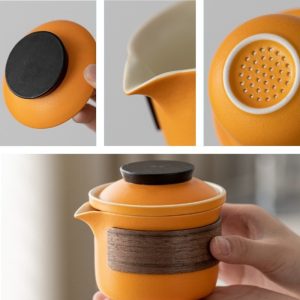 The Orange Ceramic Wooden Insulation Travelling Portable Tea Set with Case is a beautifully crafted and practical tea set with a vibrant design, ideal for tea lovers who want to enjoy tea wherever they go.