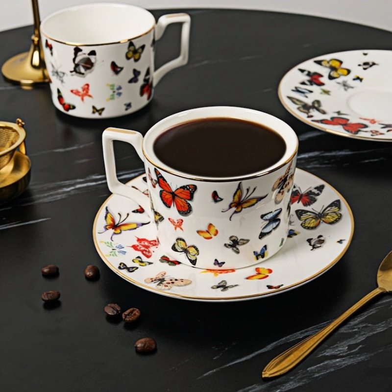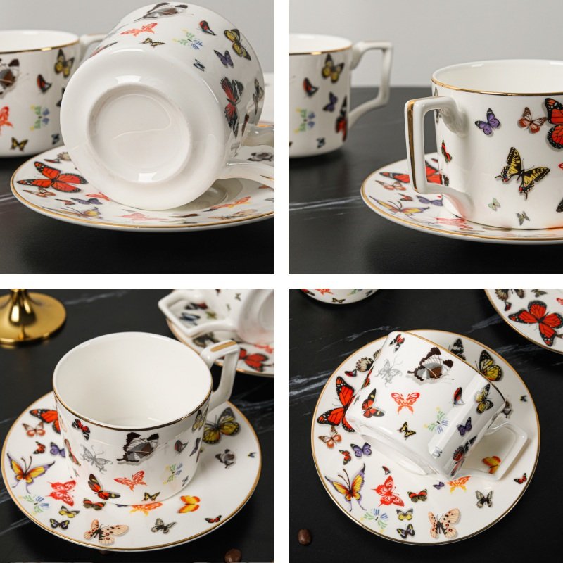 The Painted Various Butterflies English Fine Bone China Vintage Tea Cups and Saucers Set makes a thoughtful gift for any tea lover or collector. Whether it’s a birthday, holiday, or any special occasion, this set is sure to bring joy to anyone who receives it. The graceful butterfly motifs combined with the luxurious bone china material make it an ideal gift for those who appreciate fine craftsmanship and design. If you love floral designs, the pink rose tea cup collection is another perfect option for adding beauty to your tea time.