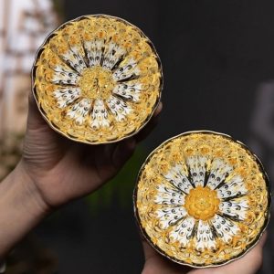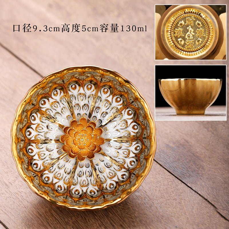 Jian Zhan pottery, especially renowned for its glossy, multi-colored glazes, traces its origins to China’s Song Dynasty. This style of pottery is deeply appreciated for its intricate design and striking visual effects. The Peacock Tenmoku Gold Glaze Jian Zhan Ceramic Bowl Tea Cup stays true to the ancient techniques, using the signature Tenmoku glaze for the outer layer, while incorporating modern elements like the golden peacock design. The result is a tea cup that not only serves as a functional item but also as a beautiful work of art.