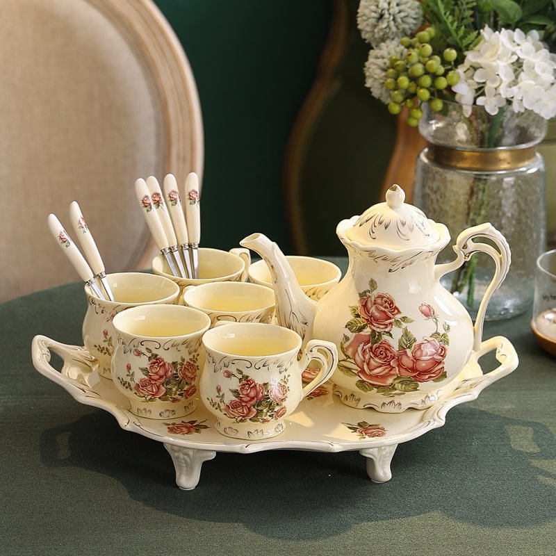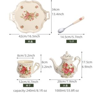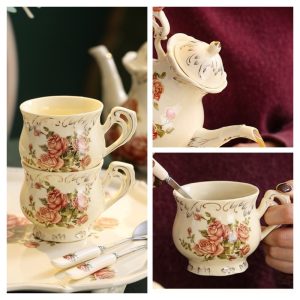 This tea set beautifully merges the elegance of English vintage style with the refined artistry of Chinese tea service set designs. The delicate floral patterns and smooth bone china surface pay homage to traditional English teapot designs, while incorporating subtle Asian influences in the overall design and presentation. This cross-cultural blend makes it a versatile addition to any home decor. Discover other exquisite collections like the Chinese tea service set for more unique designs.