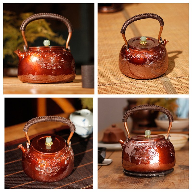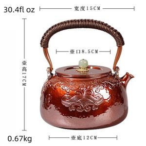 Introducing the Premium Best Annealing Antique Copper Tea Kettle with Wavy Pattern and Jade Pot Knob, a stunning fusion of beauty, tradition, and functionality. This high-quality teapot is handcrafted from premium copper, showcasing exquisite annealing techniques that enhance its antique finish. With its detailed wavy pattern and elegant jade knob, this teapot is more than just a functional piece – it is a work of art. If you’re searching for the perfect tea kettle, look no further than this beautiful and practical antique copper tea kettle.