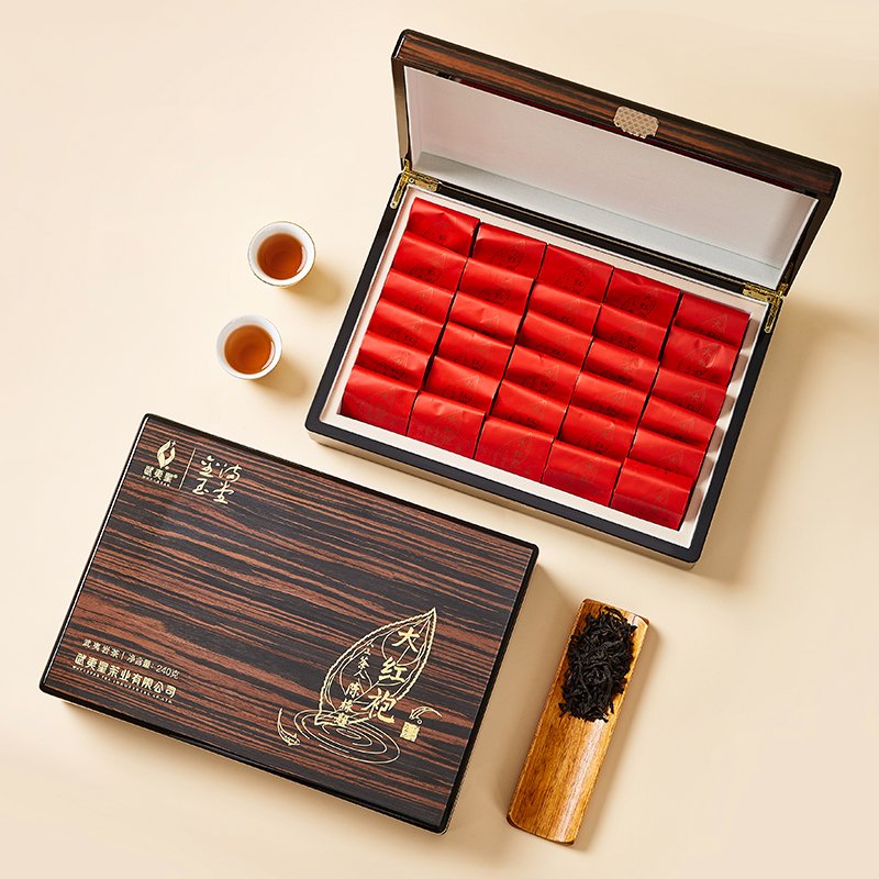 Premium Grade Classic Chinese Da Hong Pao Oolong Tea 240g Strong Aroma Heavy Roast with Luxurious Wooden Packaging
