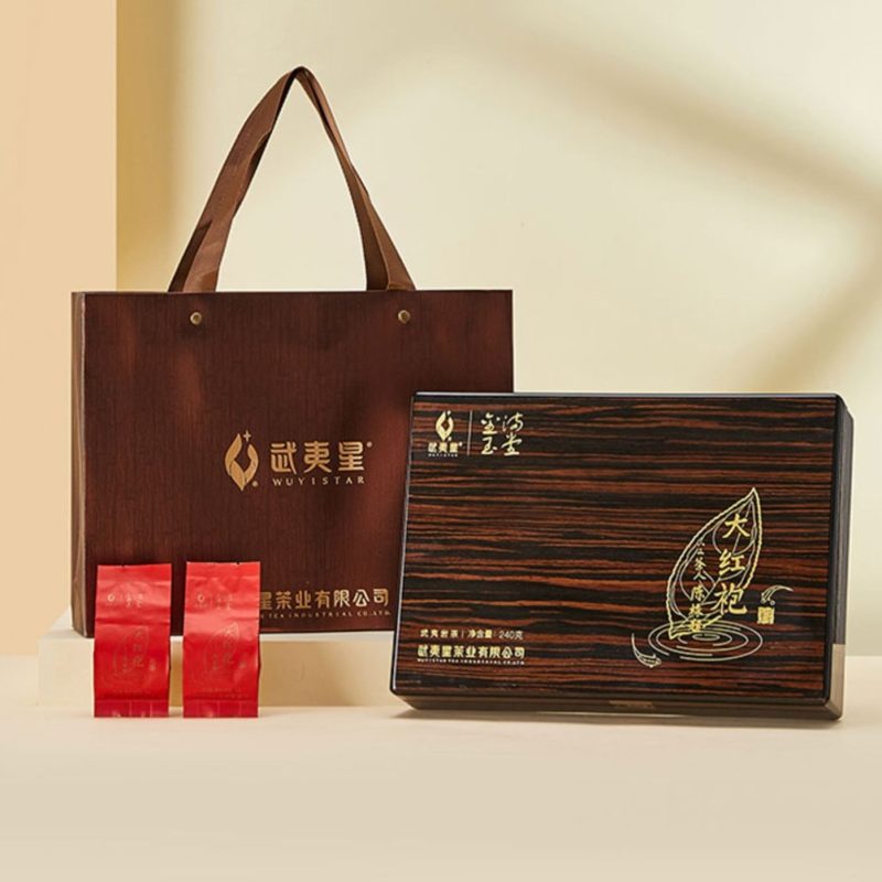 Premium Grade Classic Chinese Da Hong Pao Oolong Tea 240g offers a strong aroma and heavy roast flavor, elegantly packaged in luxurious wooden packaging, delivering an authentic and refined tea experience.