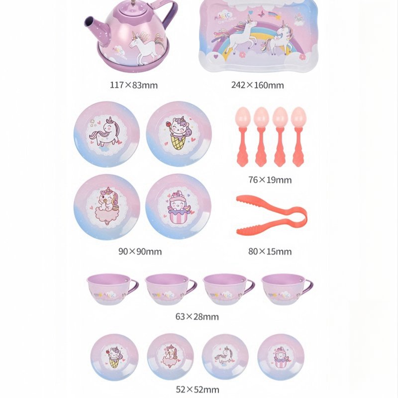 Rainbow Unicorn Tinplate Metal Afternoon Tea Aesthetic Cute Tea Set for Little Girls