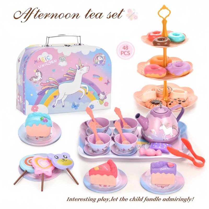 Not only does this tea set come with a full tea service, but it also includes a range of delightful accessories, including desserts, candies, and lollipops. The vibrant and colorful treats are a perfect match for the magical unicorn theme. Whether your child is serving up cakes, chocolates, or candies, they’ll have everything they need for a full, pretend afternoon tea experience. Want to explore more options with a bit of elegance? Take a look at our Rose Tea Set collection for a sophisticated choice.