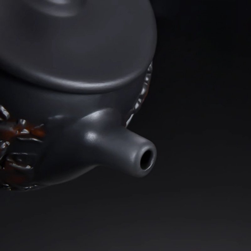 This teapot is made from purple clay, a material prized for its ability to enhance the flavor and aroma of tea. The porous nature of Chinese Yixing clay teapot material allows it to absorb the natural oils and flavors of tea, improving the taste with each use. As the teapot ages, it becomes more seasoned, imparting a richer flavor to your tea and making each brewing experience unique. Its matte black finish adds to its sophisticated and timeless aesthetic.