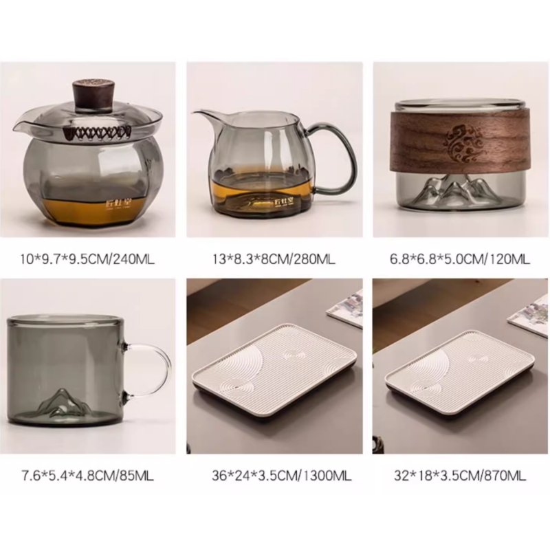 Crafted with attention to detail, this tea set features a teapot, teacups, fair cup, tea infuser, and a tea tray. The teapot’s design allows for easy pouring, with a sturdy handle and a sleek, smooth body. The teacups are perfectly sized for individual servings, while the fair cup and tea tray complement the set for a complete tea-drinking experience. The elegant grey hue adds a modern touch to any tea party, making this set not only functional but also a stunning addition to your home decor.