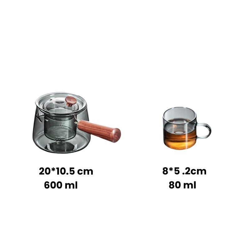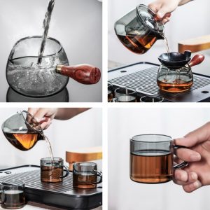 Whether you’re enjoying a peaceful solo tea moment or sharing a pot of tea with friends, the Reinforced Borosilicate Grey Glass Tea Set with Wooden Handle is designed to elevate your experience. Its elegant design and practical features ensure that every pour is a pleasure, and every sip is savored in style. This set is perfect for those who value both form and function, creating an atmosphere of serenity and sophistication. Pair this set with our Glass Tea Cups for a complete collection.