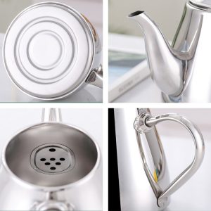 Made from high-quality stainless steel, this teapot is built to last. It offers superior resistance to rust and stains, ensuring that it remains shiny and functional for years. The robust material also keeps your tea at the ideal temperature longer. This makes it a great addition to your kitchen, offering both practicality and style. Its sturdy body is also lightweight, making it easy to handle, whether you’re pouring for one or entertaining guests.