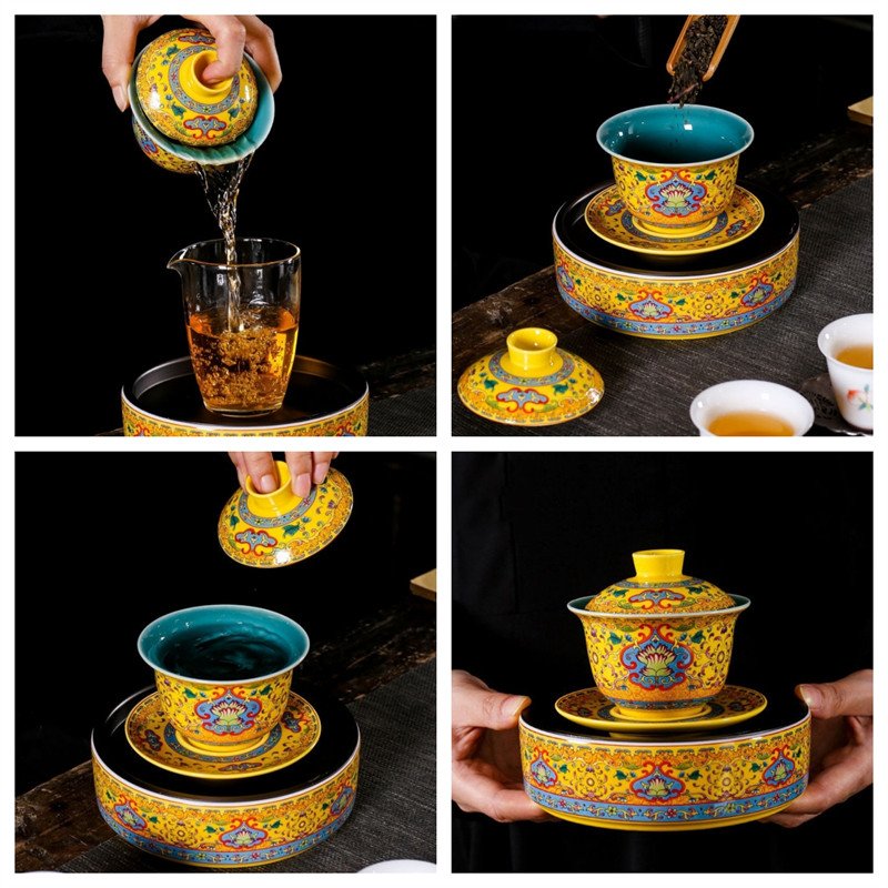 This beautiful Gaiwan set makes an exquisite gift for any tea lover. Its luxurious design and fine craftsmanship make it a perfect present for birthdays, holidays, or special occasions. Whether you are gifting it to a seasoned tea lover or someone just starting to explore the world of tea, this Royal Best Enamel Entangled Branches Drawing Ceramic Gaiwan Teapot will undoubtedly be appreciated for its beauty and function.