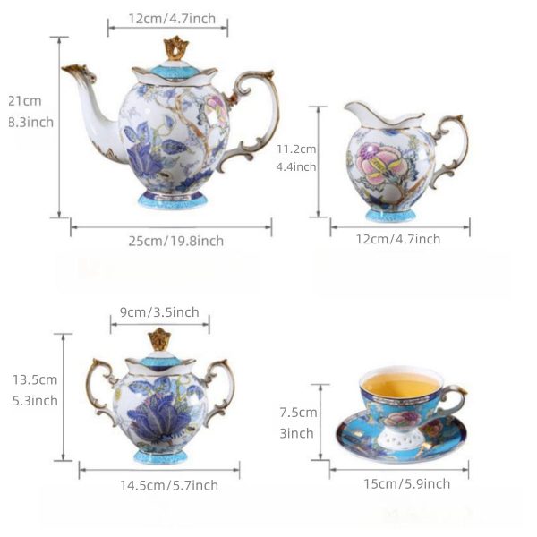 From casual tea time to elegant gatherings, this tea set suits any occasion. Its regal design and delicate floral details make it an ideal addition to both everyday settings and special events. Enhance your tea service by pairing the set with a coordinating tea serving tray, adding a stylish touch to your presentation.