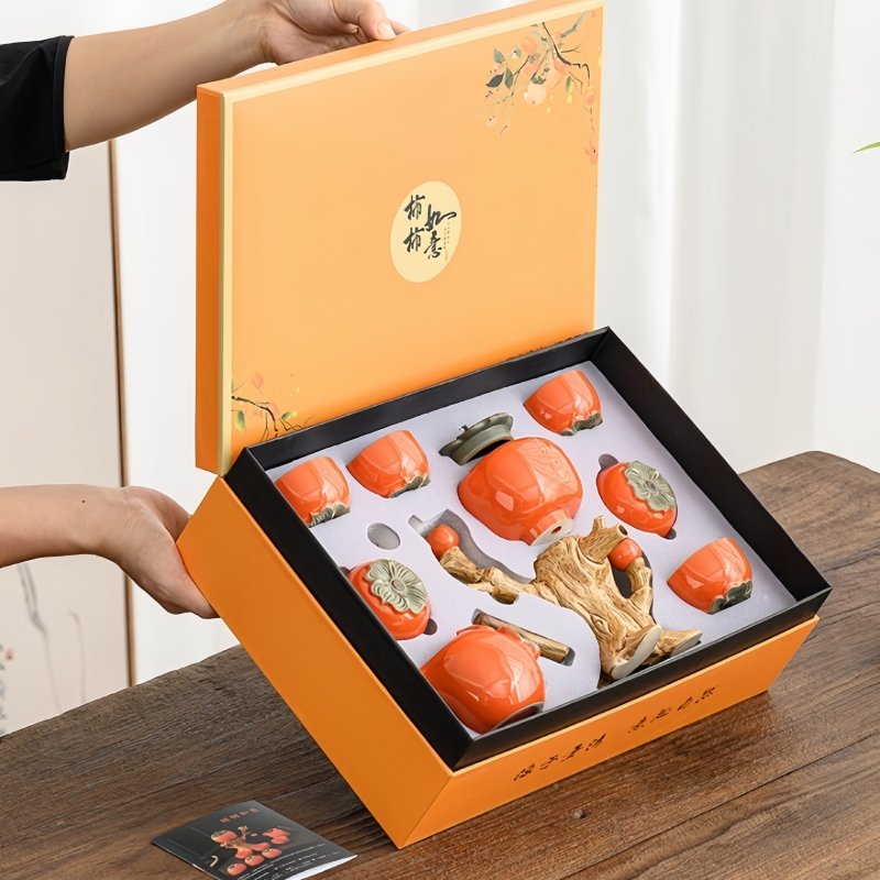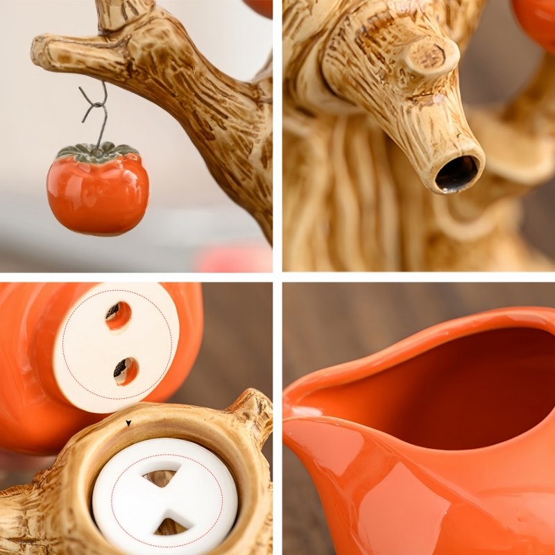 The most striking feature of this tea set is its persimmon-shaped design. The beautiful, vibrant orange color and the delicate leaf details create a whimsical yet sophisticated appearance. The teapot and teacups mimic the form of a persimmon, bringing nature’s beauty into your home. This creative and unique design is perfect for tea lovers who appreciate both functional and artistic pieces in their collection.