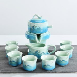 Be the first to review “Sky Blue Hand Painted Landscape Porcelain Semi Automatic Lazy Tea Set”