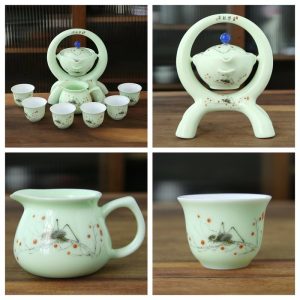 The most striking feature of this tea set is its intricate insect pattern, delicately painted onto the porcelain pieces. The soft green glaze complements the design, giving the set an elegant, serene look that will complement any tea session. The insect pattern represents nature’s harmony and beauty, making this tea set a wonderful addition to any tea lover’s collection. For more designs that balance beauty and functionality, explore our lazy kung fu tea set.