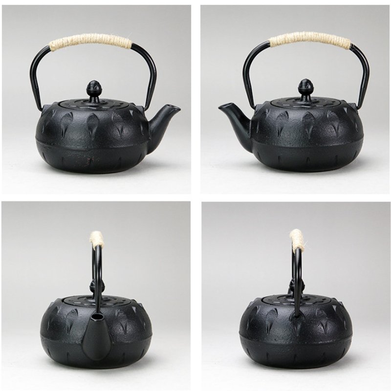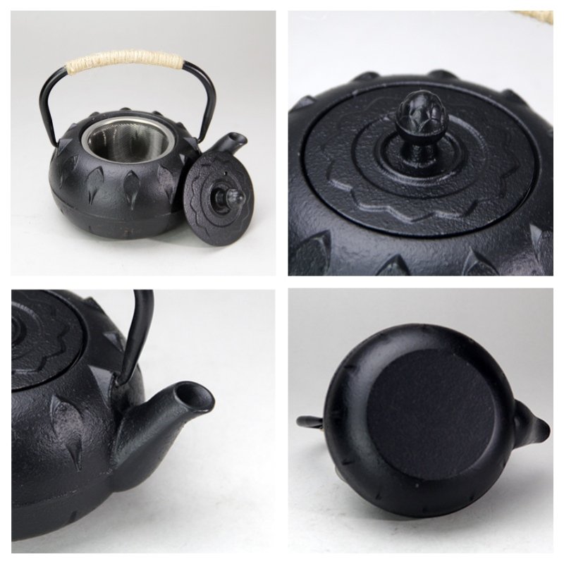 The Small Black Antique Authentic Cast Iron Teapot Set with Lotus Flower Design combines intricate craftsmanship and premium materials, perfect for tea lovers who appreciate traditional designs and excellent heat retention.