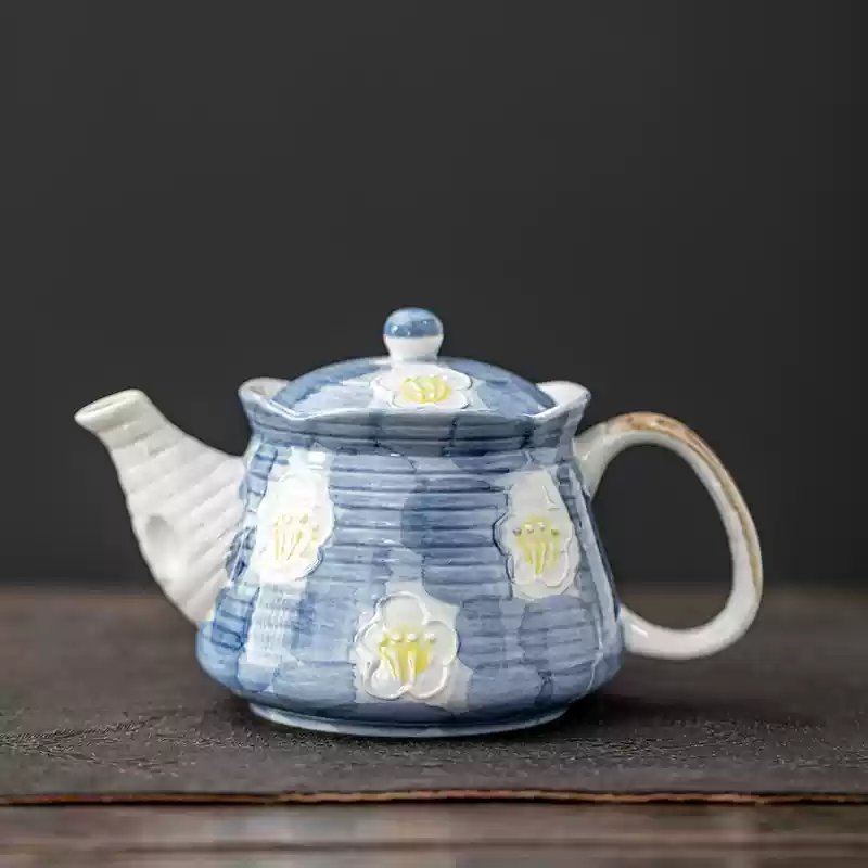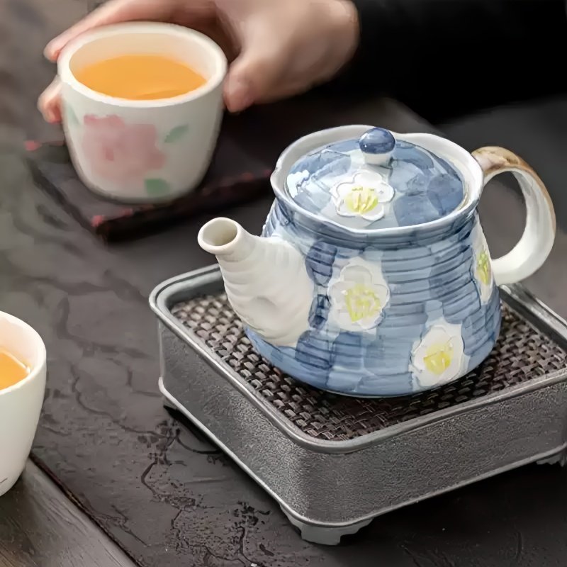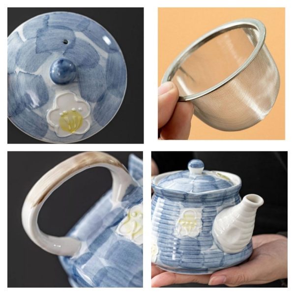 The hand-painted blue pattern on this teapot is inspired by traditional Japanese art, with intricate floral motifs adding a layer of elegance to the design. The contrast between the soft blue and white creates a harmonious, soothing effect that complements any tea-drinking ritual. This teapot is perfect for those who appreciate the aesthetic of traditional Japanese teapots, providing both beauty and function.