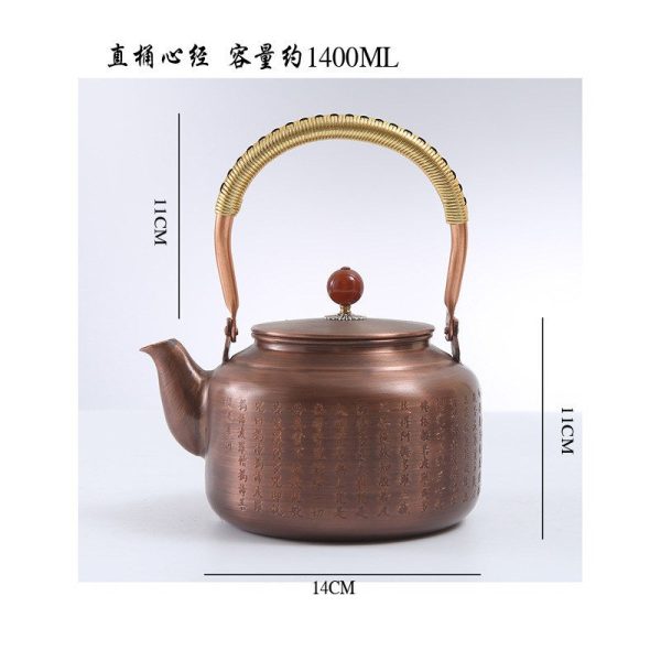 The Solid Vintage Copper Tea Water Kettle is a stunning piece that merges functional design with artistic craftsmanship. Engraved with Chinese characters and Buddhist scriptures, this kettle is not just a tea kettle but a work of art that draws inspiration from ancient traditions. The intricate engraving adds a deep cultural value, making it the perfect addition for tea lovers who appreciate both aesthetic beauty and spiritual meaning. This unique design sets it apart from typical kettles, adding a rich sense of history to your tea rituals. If you appreciate the quality and artistry of an antique copper teapot, this kettle will be an essential piece in your collection.