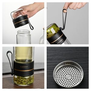 The Tea and Water Separation Borosilicate Double-wall Glass Tea Cup with Tea Infuser is the perfect solution for tea enthusiasts who appreciate both functionality and style. This innovative tea cup is designed with a separation system that allows the tea leaves and water to be stored separately, ensuring that your tea does not become too strong or too weak. Made from high-quality borosilicate glass, it is both durable and heat-resistant, making it ideal for both hot and cold tea beverages. With a built-in tea infuser, this tea cup allows for convenient loose-leaf tea brewing, ensuring that every cup is brewed to perfection.