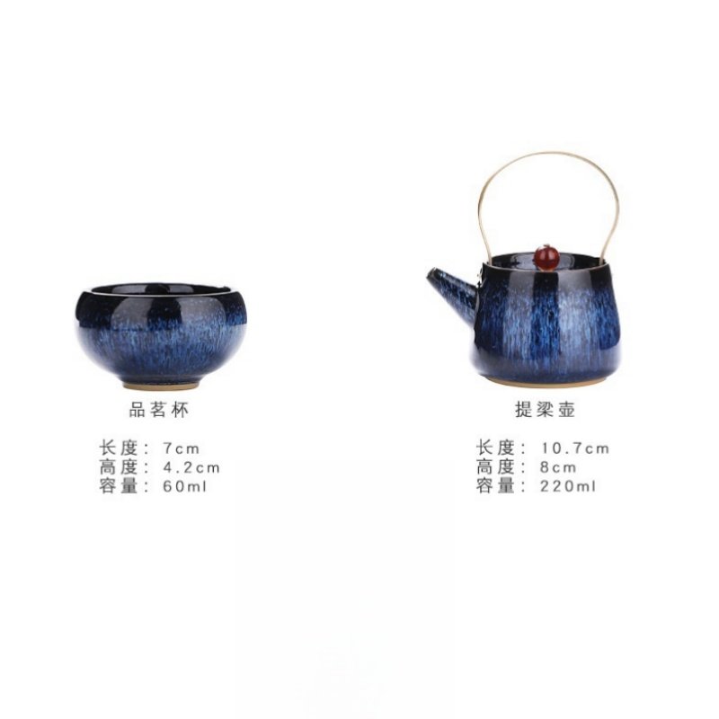 This Traditional Antique Chinese Teapot and Cup Set showcases a mesmerizing blue glaze finish, creating a stunning visual effect reminiscent of flowing water or a starry night sky. Perfect for any tea enthusiast, its unique design adds a sophisticated touch to your tea table. Pair it with our Chinese teapot set for a complete collection.