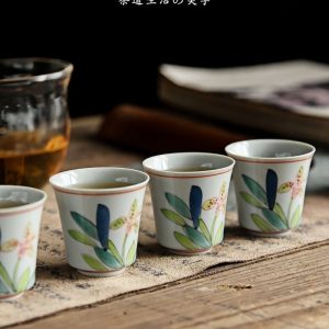 The iris flower, a symbol of wisdom, faith, and purity, is carefully hand-painted onto the fine ceramic surface. Using a delicate brushstroke technique, the vibrant petals and lush green leaves come to life, creating a stunning visual experience. This tea cup complements traditional tea wares such as a Chinese tea cup with lid, perfect for preserving the warmth and aroma of fine teas.