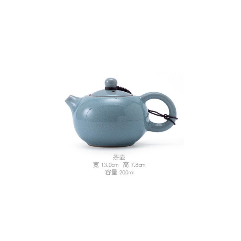 This traditional celadon ceramic teapot embodies timeless Chinese craftsmanship and artistry. Featuring a stunning blue ice crackle glaze, it seamlessly combines elegance, functionality, and cultural heritage, making it a perfect addition to any tea collection.