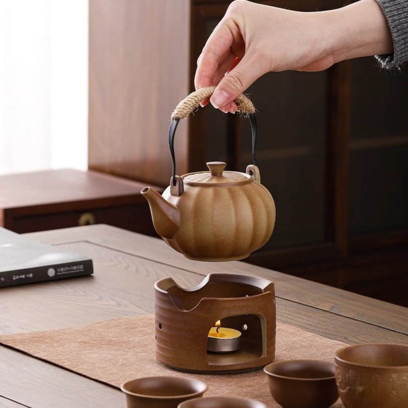 The Traditional Pumpkin-Shaped Vintage Ceramic Teapot and Wax Candle Porcelain Warmer brings classic artistry and functionality together, keeping your tea warm while adding rustic elegance to your tea sessions.