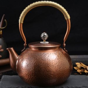 Copper is widely regarded for its excellent heat conductivity, making it the perfect material for tea kettles. This ensures your tea stays warm for longer periods while delivering an even brew every time. If you’re looking for a different style, our Brass Teapot offers a distinct aesthetic and similar functionality.