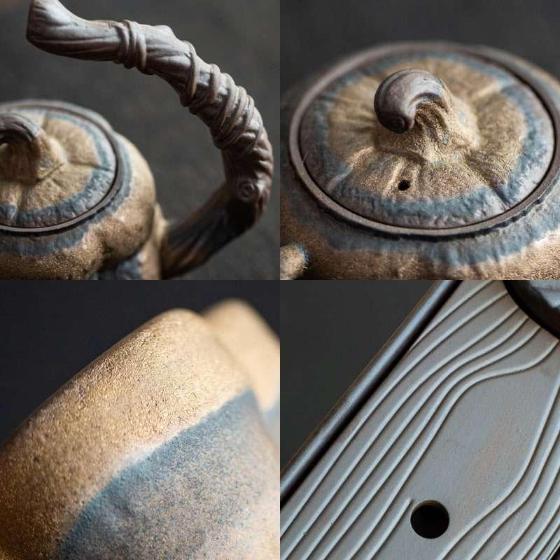 The craftsmanship involved in creating each piece of this tea set is a testament to Japanese ceramic traditions, focusing on sustainability and enduring beauty. The rust glaze not only enhances the aesthetics of the set but also ensures long-lasting durability, making it perfect for regular use. Enjoy the beautiful balance of tradition and innovation with every cup of tea.