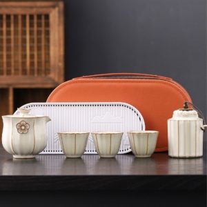 Be the first to review “Vertical Stripes Beige Porcelain Portable Gongfu Travelling Tea Set Case with Caddy”