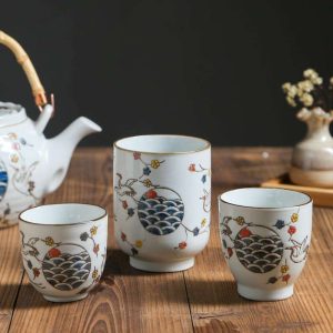 Crafted from high-quality porcelain, this teapot and cup set combines both beauty and durability. The porcelain is smooth, glossy, and perfect for retaining heat, which ensures that your tea stays warm for a longer period. The vibrant blue, red, and white tones of the crane design contrast beautifully against the white porcelain background, creating a visual feast. The smooth surface makes this set easy to clean, while the porcelain’s strength ensures it will last for years, maintaining its beautiful design.